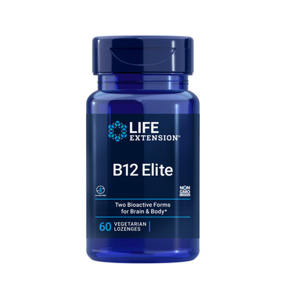 B12 is a water-soluble vitamin that plays a vital role in the health of your nervous system, blood cells, and your DNA (B12 helps protect delicate parts of your chromosomes). Life Extension B12 Elite can deliver 500 mcg each of adenosylcobalamin and methylcobalamin: two neurologically active forms of B12 that can help protect your brain at the cellular level.