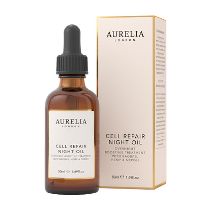Aurelia's Cell Repair Night Oil works to hydrate and soothe all skin types, promoting a luminous, dewy and radiant glow.