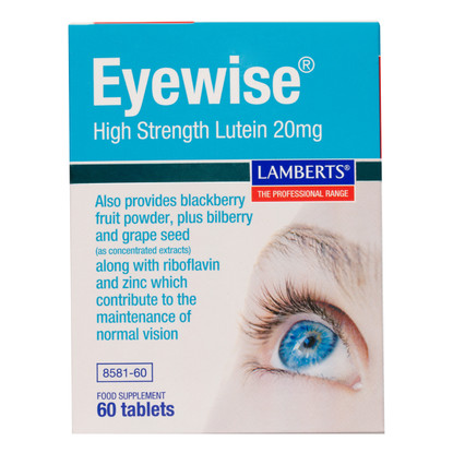 Lamberts EyeWise® tablets is a supplement for eyes containing high-strength Lutein plus bilberry, grapeseed and blackberry. This eye supplement also includes zinc and riboflavin, both of which are known to contribute to the maintenance of normal vision and the protection of cells from oxidative stress.