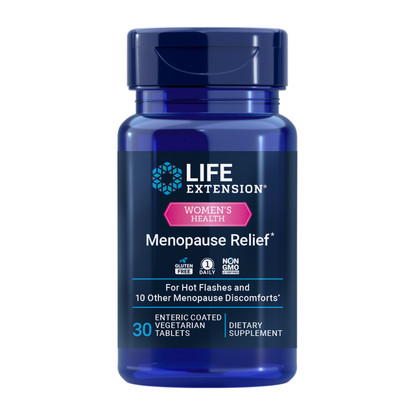 Menopause Relief uses a unique, clinically studied extract of Siberian rhubarb to address 11 common menopausal discomforts: hot flashes, night sweats, irritability, mood swings, sleep disturbances, exhaustion, joint and muscle discomfort, vaginal dryness, urinary health, and sexual function.