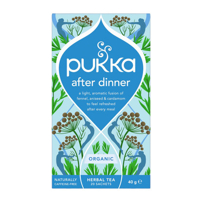 Formerly known as Feel New, Pukka Herbs After Dinner Tea is the perfect herbal blend to enjoy after meals. Whether you're winding down from a hearty dinner or seeking a soothing evening ritual, this organic tea offers a harmonious fusion of natural ingredients designed to support digestion and promote relaxation