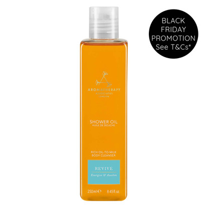 Step into the shower and pour the rich Aromatherapy Associates Revive Shower Oil into cupped hands. Take a moment to inhale deeply. Massage into skin and experience it transform into a cleansing milk as the therapeutic aromas fill your shower.